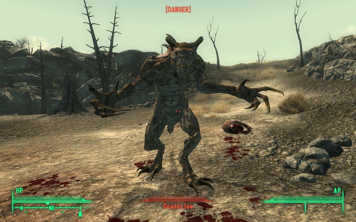 A few hours into my first playthrough, I was exploring the area of Grayditch. I had just helped a young boy find a new home when I saw something strange in the distance. It was a huge, scaly looking beast, almost like a crocodile with horns and legs. I entered into VATS and saw that the beast was called a "deathclaw". Deathclaw? What the hell is that? That was my initial reaction, and instead of fighting, I ran. I ran very far away.